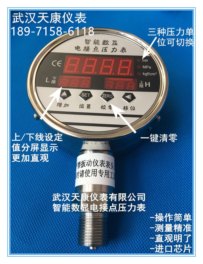 智能數(shù)字電接點壓力表是專為現(xiàn)場實時顯示壓力值并控制的智能化儀表;工業(yè)級產(chǎn)品設(shè)計,高品質(zhì)壓力傳感器芯片和電子元器件;具有抗干擾,操作簡單等特點。主要應(yīng)用于石油、化工及各種工業(yè)氣體液體的測量與控制。