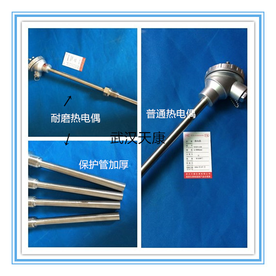 武漢天康儀表耐磨熱電偶主要用于煤粉爐,球磨機,水泥廠等工業(yè)現(xiàn)場,采用鎧裝或高溫鎧裝芯體,配以不同材質(zhì)及規(guī)格的耐磨套管,耐磨損、耐震動、抗熱震性能好,在各種磨損程度極高的惡劣場合中產(chǎn)品的使用壽命可達普通產(chǎn)品的幾倍之高,大大提高了生產(chǎn)效率, 降低成本消耗。 采用特種耐熱和耐磨合金材料作為測量外保護管兼耐磨頭,內(nèi)裝鎧裝芯體,既能具有較高的對粉煤灰顆 粒沖刷的耐蝕性能,能長期在0~1400℃之間進行溫度測量,是冶金行業(yè)運用于高溫、耐磨環(huán)境中十分理想的溫度傳感器。